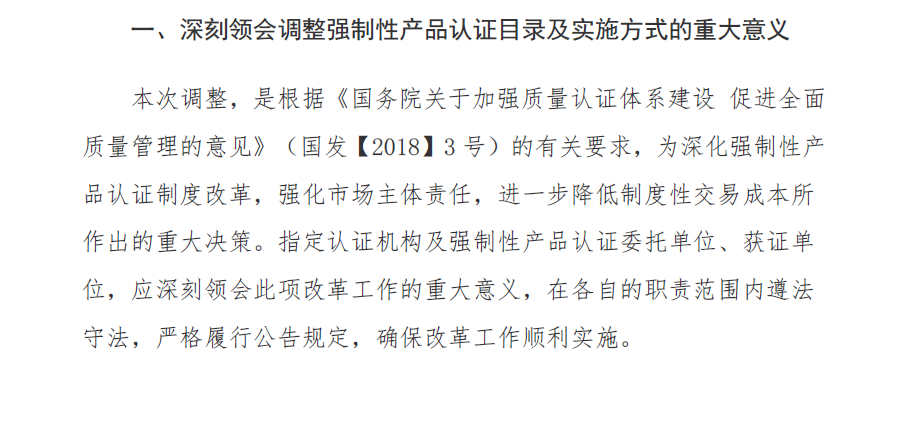 2018年6月11日,國(guó)家市場(chǎng)監(jiān)督管理總局、國(guó)家認(rèn)證認(rèn)可監(jiān)督管理委員會(huì)發(fā)布2018年第11號(hào)公告,調(diào)整部分強(qiáng)制性產(chǎn)品認(rèn)證目錄及實(shí)施方式。