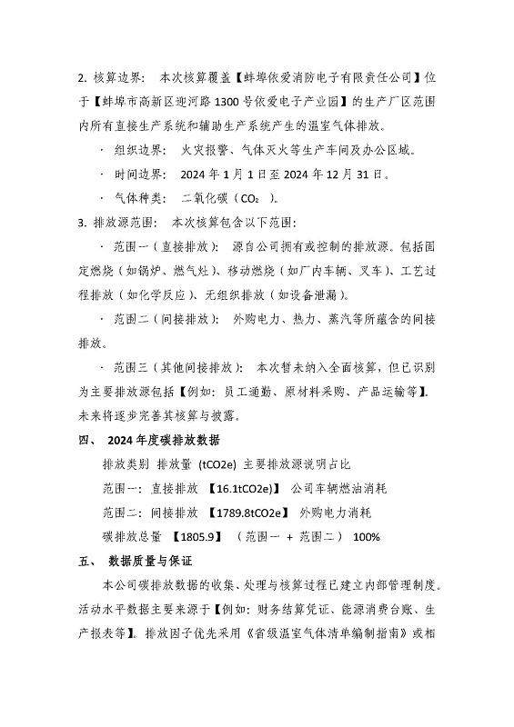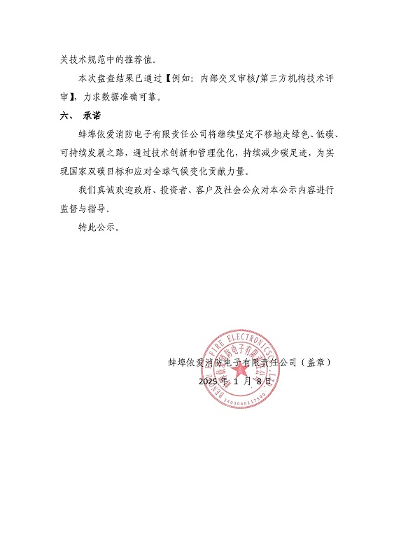 蚌埠依愛消防電子有限責(zé)任公司2024年碳排放公示